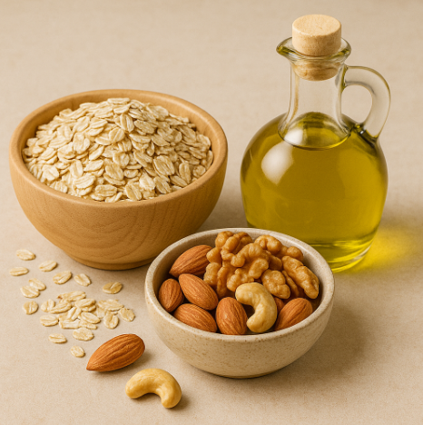 오늘은 제가 콜레스테롤 수치를 개선하기 위해 실천했던 식품 중심으로, 귀리·견과류·올리브오일을 소개드리겠습니다.
